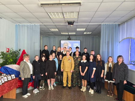 В рамках Дня воина-интернационалиста, работники библиотеки совместно с творческим коллективом РДК для учащихся старших классов Менчерепской СОШ организовали урок мужества. Приглашенные гости — Валерий Петрович Кнырик, руководитель Беловского городс