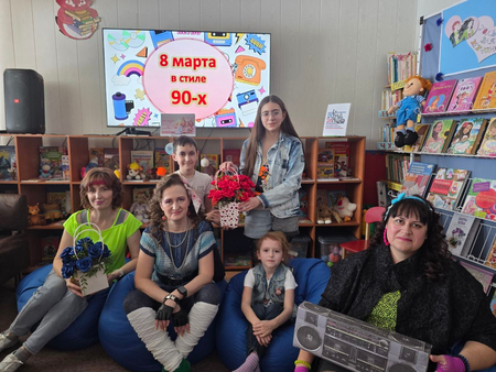 Как же приятно отметить 8 марта в стиле 90-х! Для участников клуба "Семейная гостиная" в библиотеке подготовили конкурсно - развлекательную программу «8 марта в стиле 90-х»: музыка, игры, море позитива. Вспомнили «крылатые&raq ... Читать дальше »