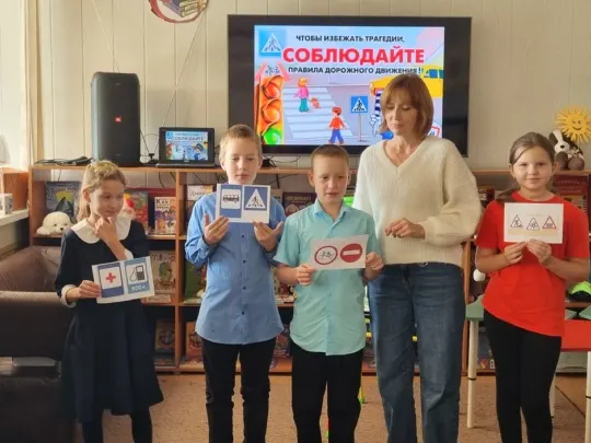В нашей библиотеке прошла конкурсно-игровая программа «Знание ПДД - безопасная дорога». Школьники активно участвовали в мероприятии: они отвечали на загадки о правилах дорожного движения, слушали стихи о безопасности на дорогах и принимали участие в подвижных играх, которые помогли закрепить знания основных правил дорожного движения.