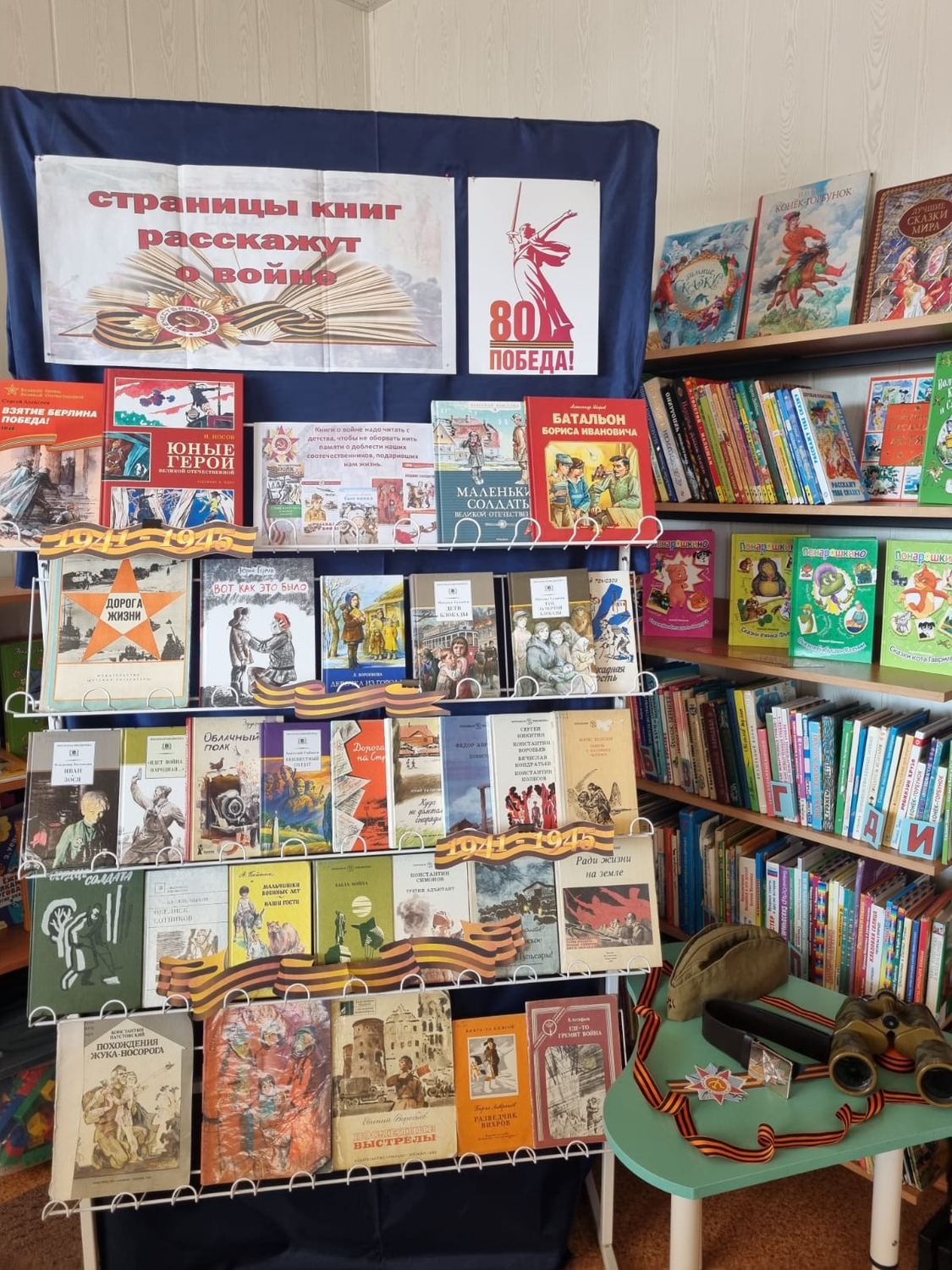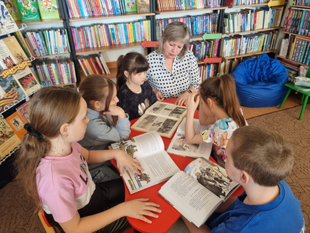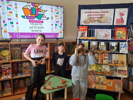 В рамках Недели детской книги посвященной 80-летию Победы в Великой Отечественной войне и Году защитника Отечества, слоган которой – «История с продолжением», состоялся обзор книжной выставки «Страницы книг расскажут о войне». Сотрудники библиотеки познакомили с авторами книг, которые рассказывают о героизме советского народа, отдавших свои жизни ради мира на земле, о подвигах героев, о мужестве командиров, солдат и стойкости тружеников тыла и детей.  |